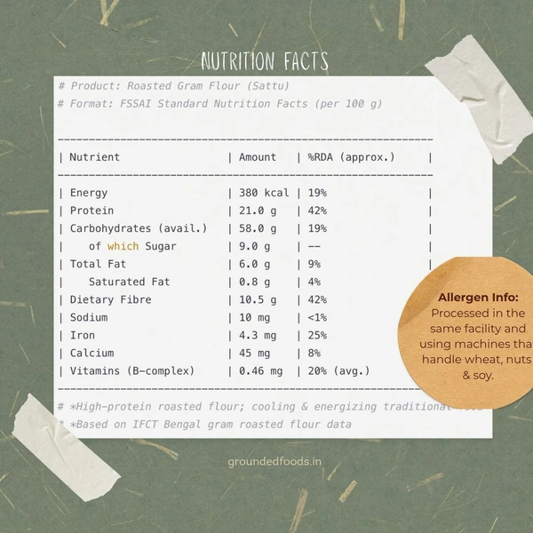 Roaster gram flour also popularly known as Satoo in Bihar. Satoo is made from fully roasted gram, cooled and ground to fine powder. Ingredients: 100% Roasted gram, Store in airtight container and in a clean place. We recommend you to buy in smaller quantities as it is always fresh and tastes better. Shelf-life: 45 days